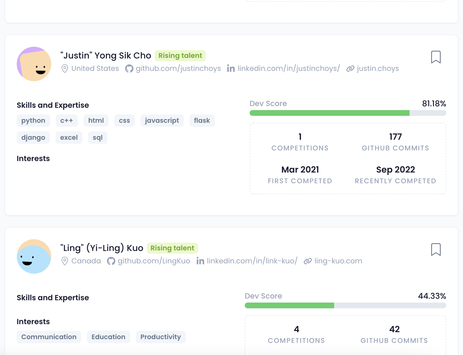 Developerrr.com identifies the CTOs of tomorrow, before they get talent-spotted by anyone else. Every day we help you find the world's fastest-rising software talent by analysing millions of open source projects, programming competitions, personal portfolios, hackathons, software awards, developer communities & startup networks.