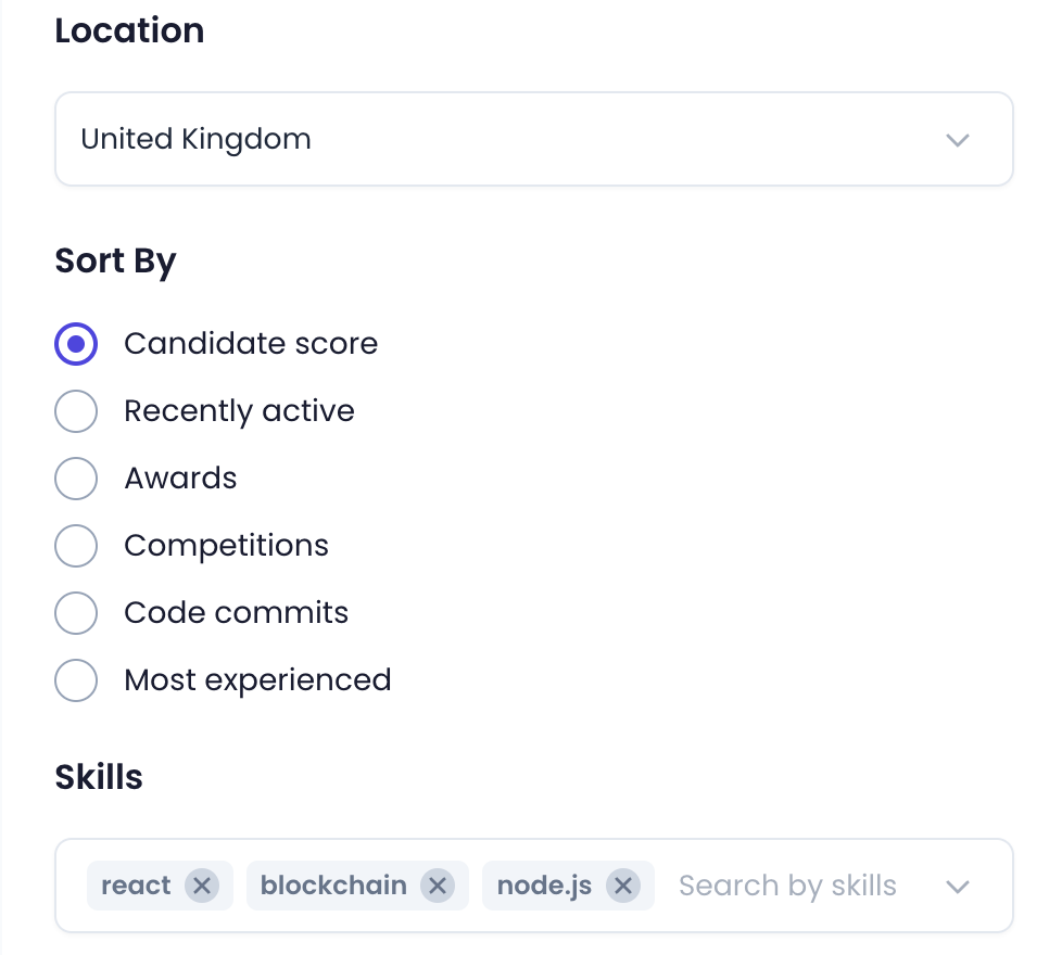 Underpinned by artificial intelligence and natural language processing, we provide your team with instant insight from over half a million global programming athletes - giving your organization the edge in sourcing global programmers with unrivalled talent & potential.